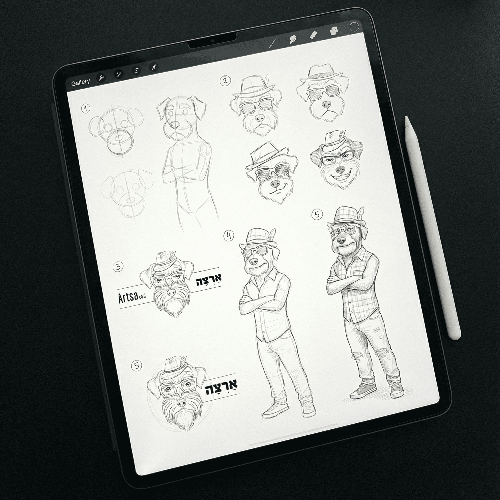 Artsa the dog was developed directly from the brand identity, while Hertzel was created as a studio inspired character designed to bring humor and contrast into the storytelling.